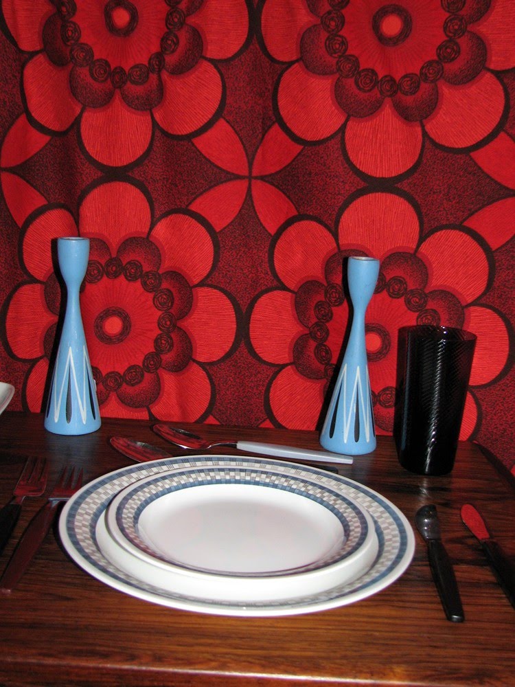 Dagens utmaning från retroblogsfären är en trevlig middagsdukning. Pga tids- och platsbrist får det bli en enkel variant på ett litet soffbord 🙂