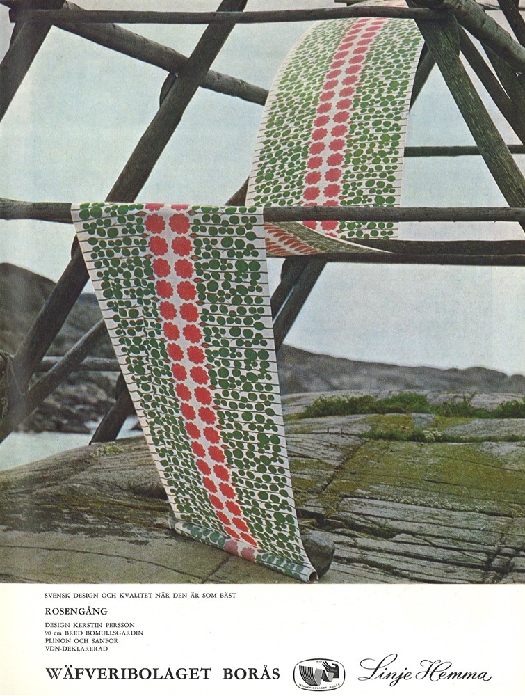 När vi ändå är inne på Linje hemma, så kan jag ju visa några andra tyger från den kollektionen som jag inte har, men som marknadsfördes i tidningen Form på 1960-talet.